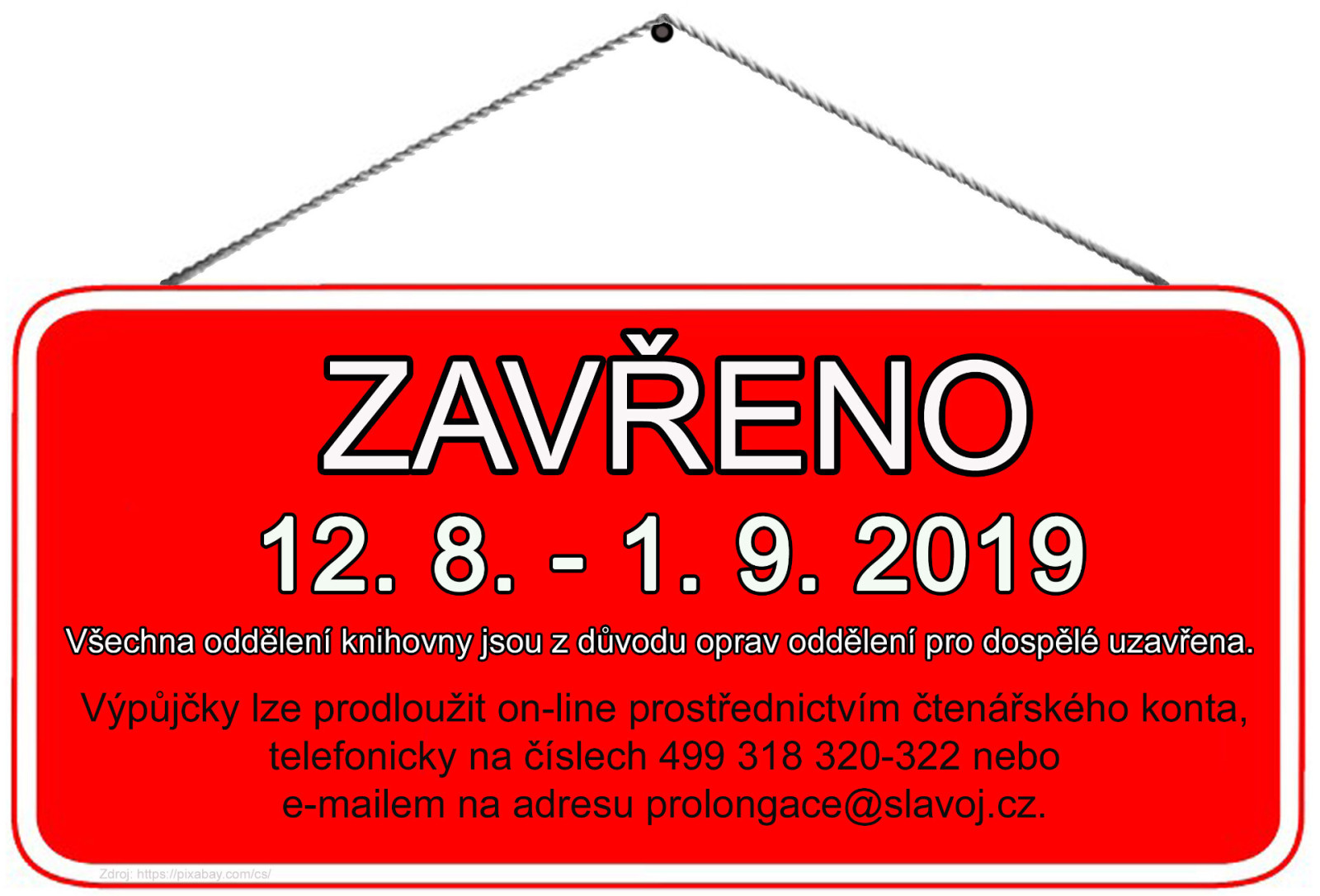 Knihovna Slavoj uzavřena 12. 8. - 1. 9. 2019